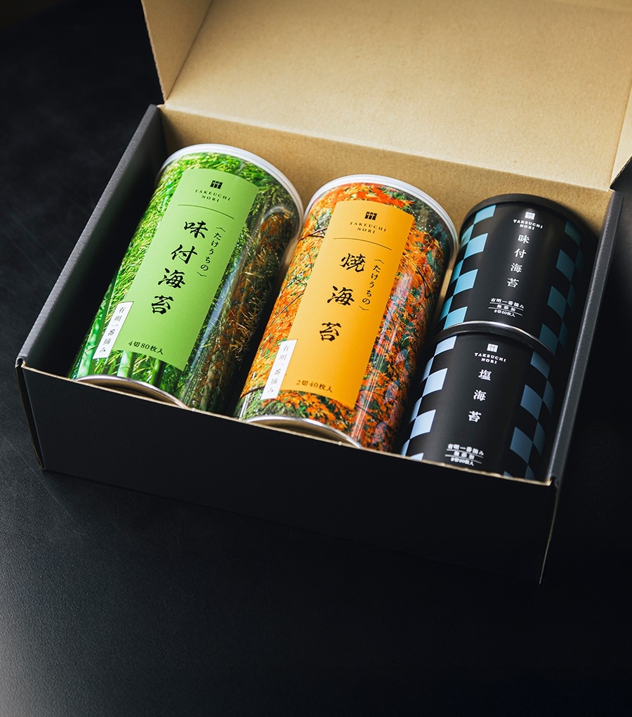 こだわりの有明一番摘み海苔の大缶が2本、小缶が2本入ったギフト商品です。